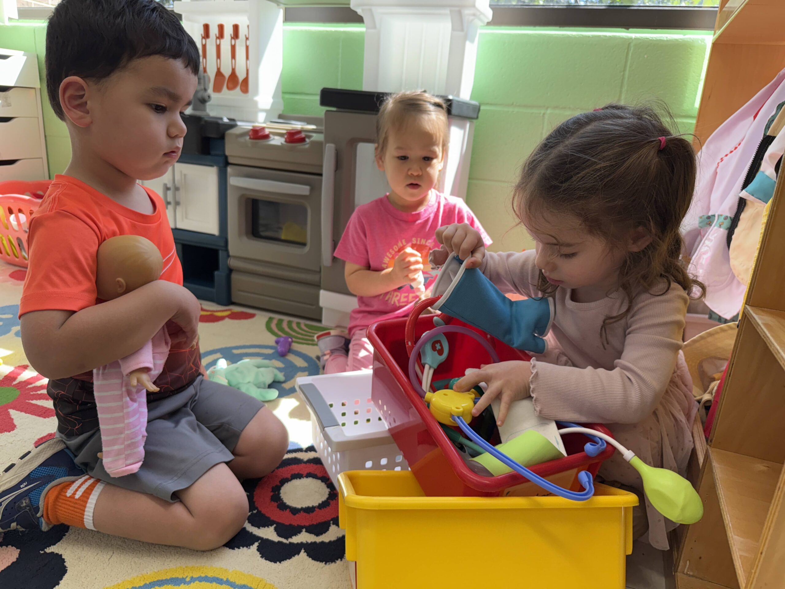 • Exploration Stations (11:10–11:30): Open-ended activities including art, blocks, sorting, and manipulatives that encourage creativity, problem-solving, and fine-motor development